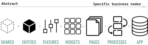 - slices - 특정 비즈니스의 Entities로 이루어짐(서비스별로 묶여있음)