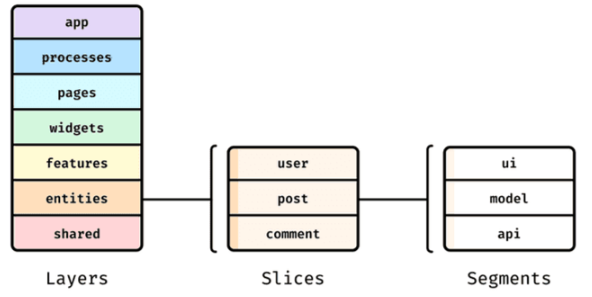 - segments - ui, model, api 등 기술적인 목적에 따라 코드가 이루어짐(기능별로 묶여 있음)