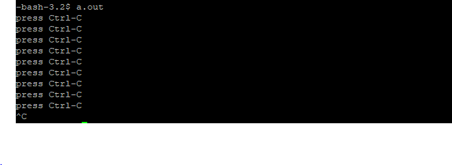 #include <stdio.h> #include <signal.h> struct sigaction newact; struct sigaction oldact; void sigint_handler(int signo); int main(void) { newact.sa_handler = sigint_handler; // 시그널 처리기 지정 sigfillset(&newact.sa_mask); // 모든 시그널 봉쇄 // SIGINT를 지정하면서 oldact에 기존 처리기 정보를 저장한다. sigaction(SIGINT, &newact, &oldact); while(1) { printf("press Ctrl-C\n"); sleep(1); } } void sigint_handler(int signo) { printf("signal no: %d \n", signo); printf("This will end if you press Ctrl-C again\n"); sigaction(SIGINT, &oldact, NULL); }