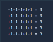 - 예를 들어 [1,1,1,1,1]로 숫자 3을 만들려면 다음 다섯 방법을 쓸 수 있다.