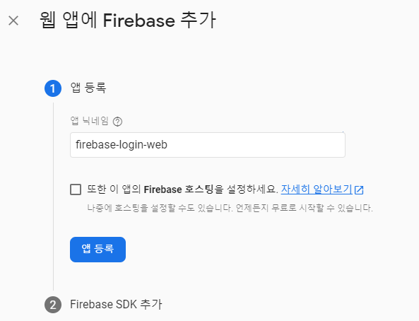 이제 firebase에 내 app(web)을 추가하자.