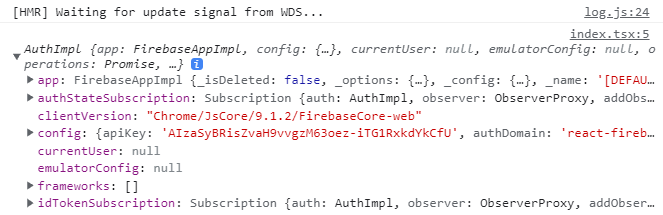 import React from "react"; import ReactDOM from "react-dom"; import App from "./App"; import { auth } from "./firebase"; console.log(auth); ReactDOM.render( <React.StrictMode> <App /> </React.StrictMode>, document.getElementById("root") );