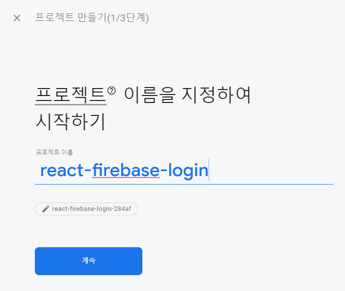프로젝트 이름을 생성하고, 게속버튼을 누르고 프로젝트를 만들자. 생성이 완료되면 다음과 같은 페이지가 나온다