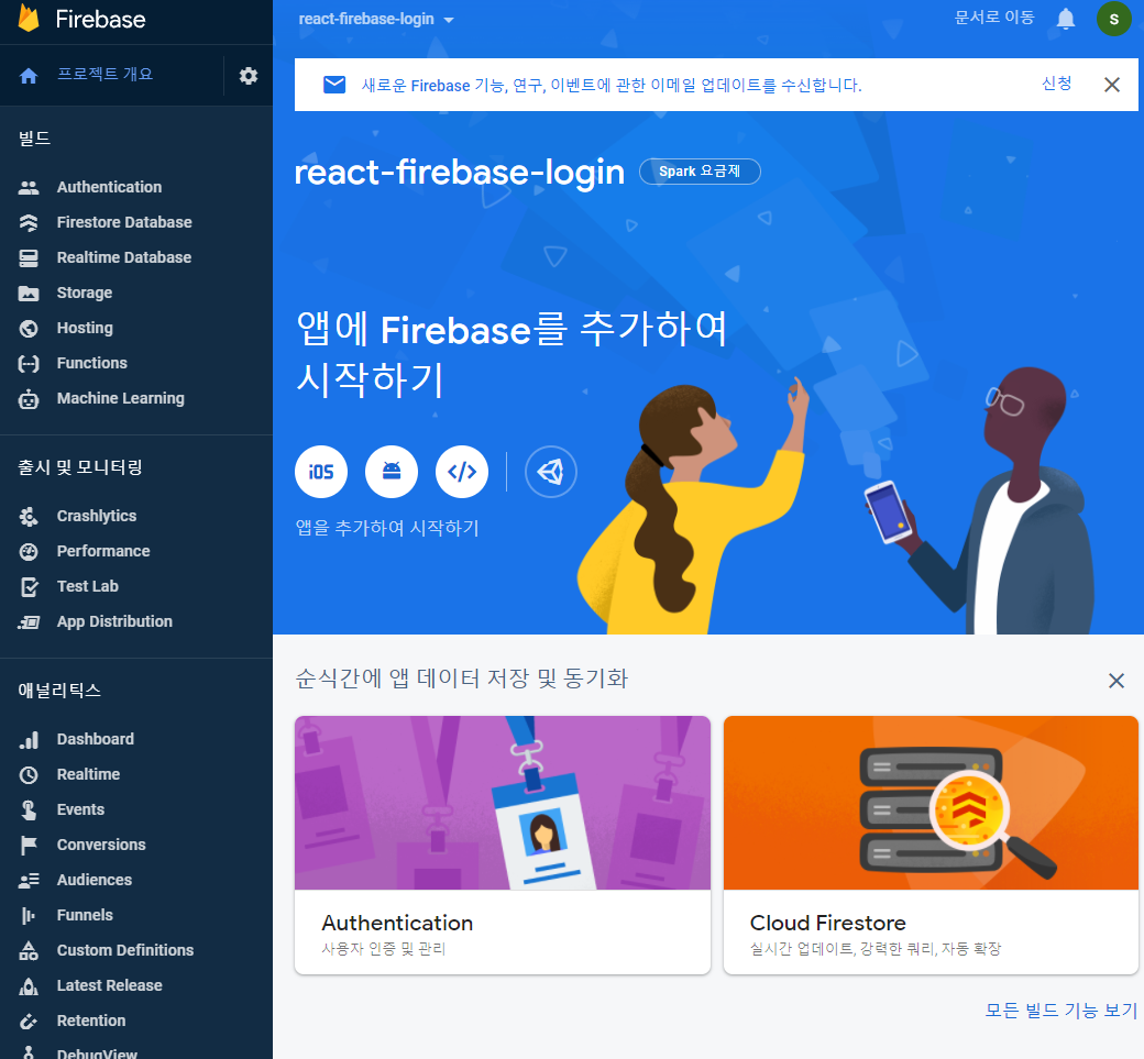지금까지 fireabse 로그인 프리 셋팅을 완료했다.