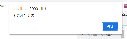 회원가입 완료되는 문구가 나온다. firebase 즉 서버에도 데이터가 생성되었는지 확인해보자