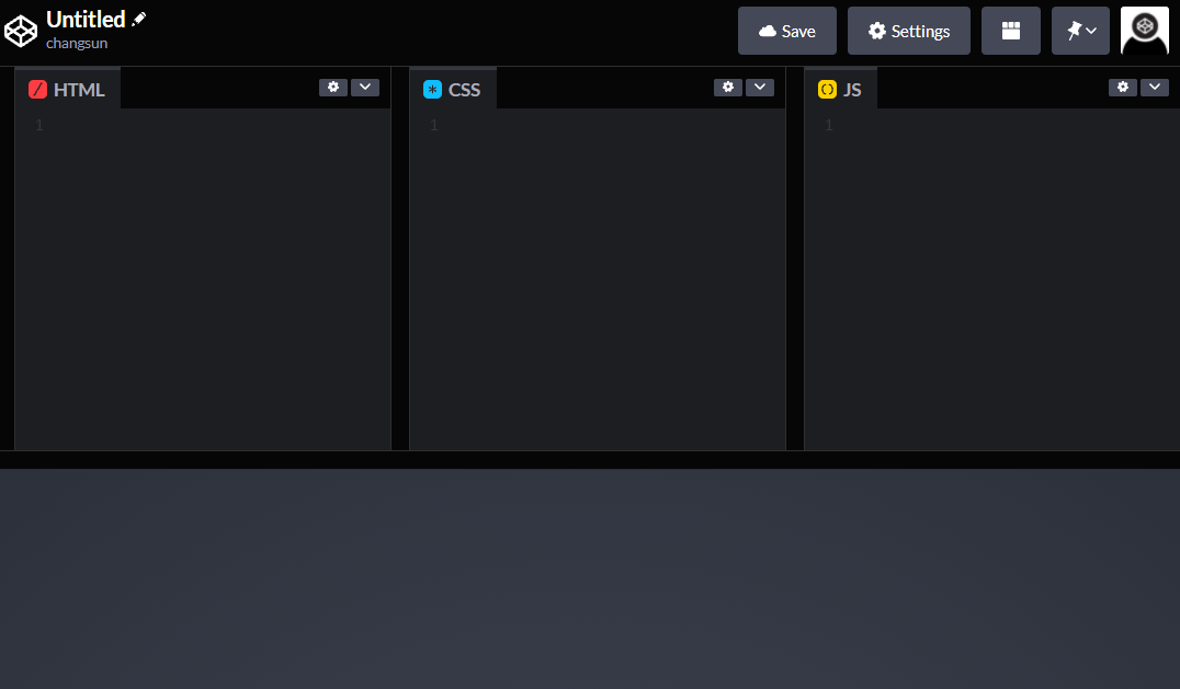 좌측 상단에 Pen 버튼을 클릭하면 프로젝트를 생성할 수 있다.